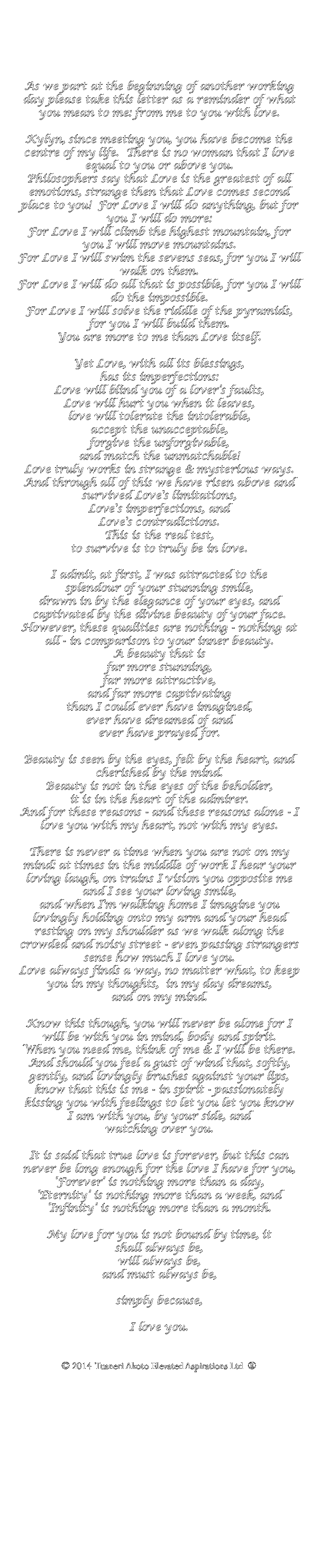 No Love Letter may be reproduced in part or whole without the written consent of Elevated Aspirations Ltd ®